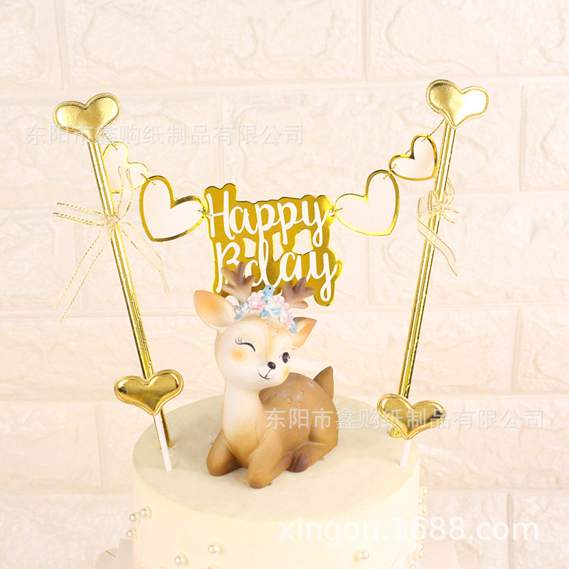 Amazon baking cake decoration plug-in gold love birthday cake decoration flag flag plug-in card