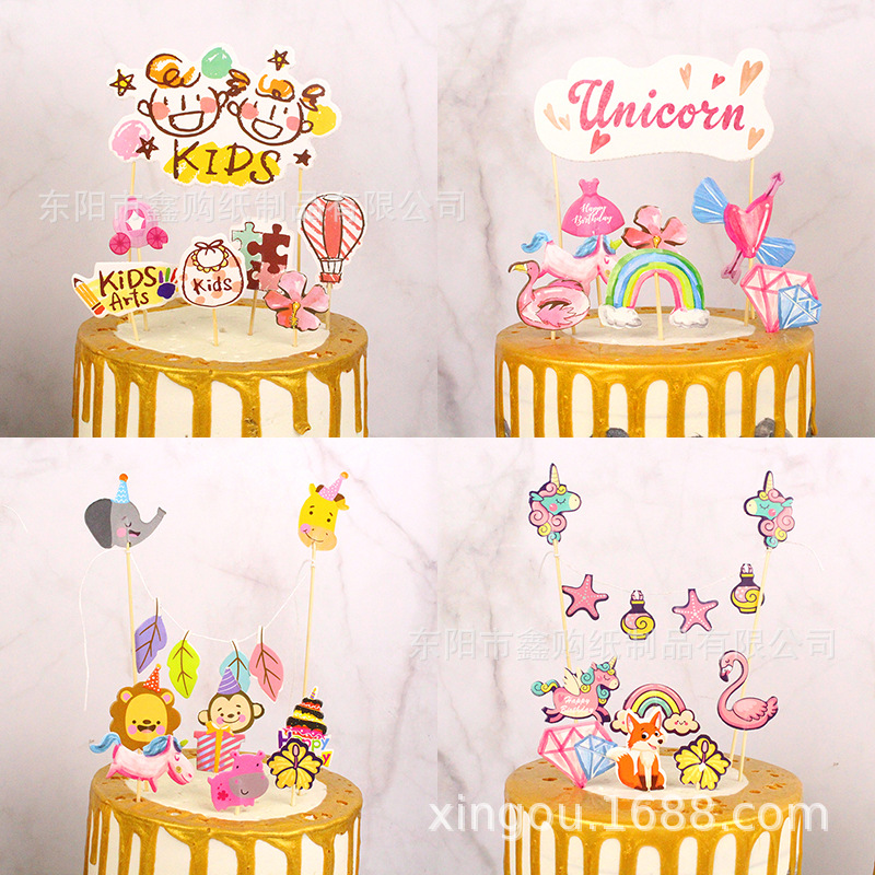Amazon cake decoration engineering vehicle/flamingo/unicorn/baby/zoo card cake plug-in