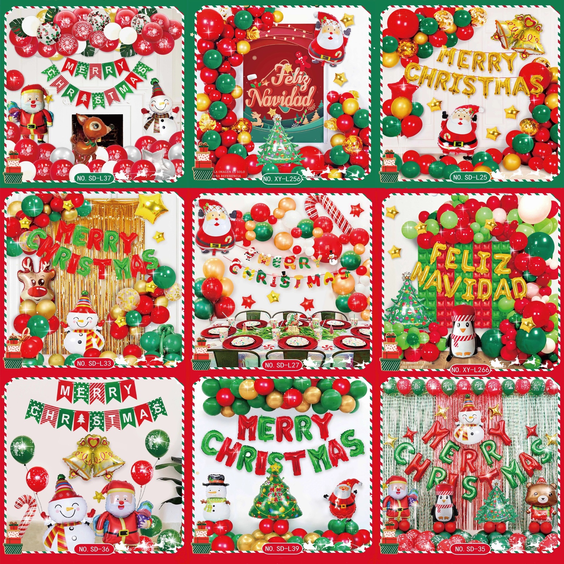 Each set comes with an assortment of vibrant balloons, featuring classic Christmas symbols such as Santa Claus, reindeer, snowflakes, and Christmas trees.