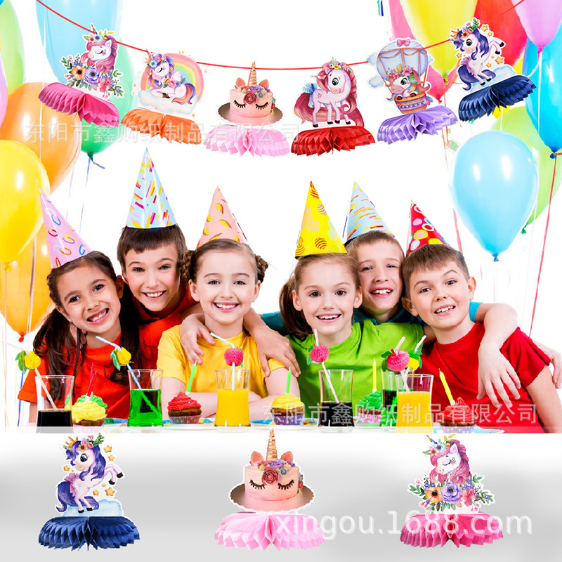 Unicorn honeycomb special-shaped honeycomb paper latte birthday honeycomb table setting party scene honeycomb ball dress up